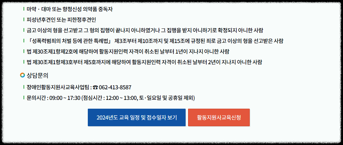 아래 링크에서 광주 장애인 활동지원사 교육일정을 확인하고 신청하시기 바랍니다.