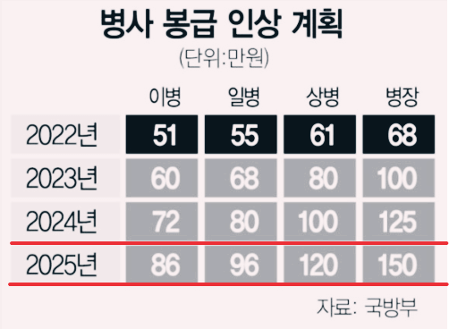 2024년 군인 월급