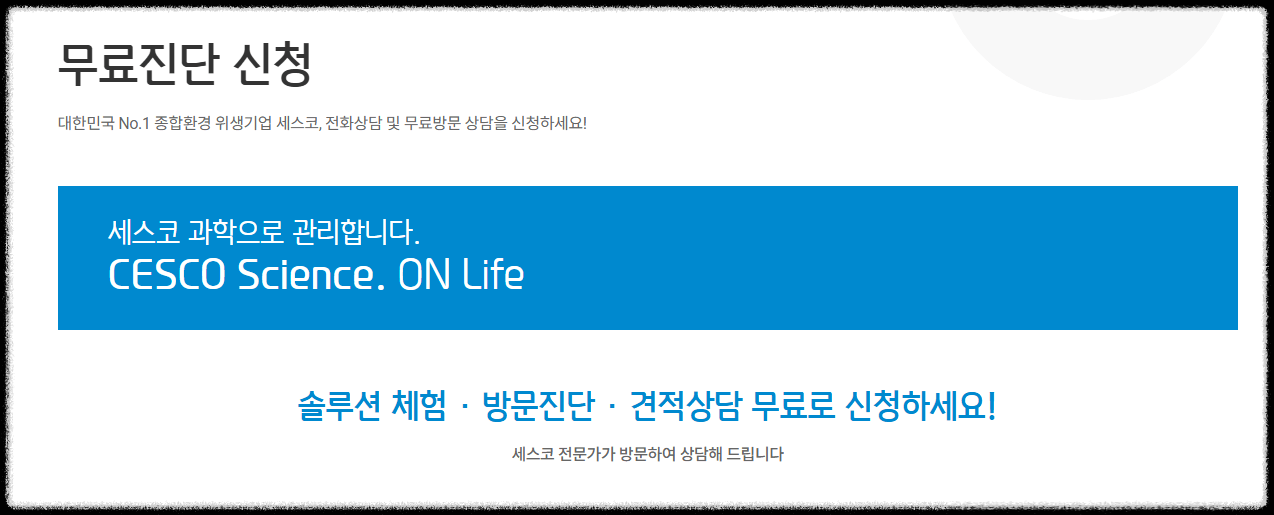 세스코의 무료 진단 서 비스는 간단하게 신청할 수 있습니다. 아래의 절차를 따라 해 보세요.